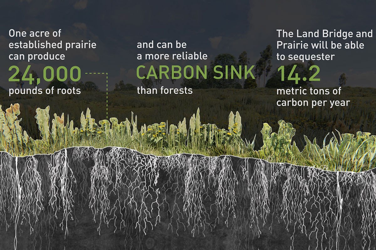Highlights and benefits of the Land Bridge and Prairie project include: