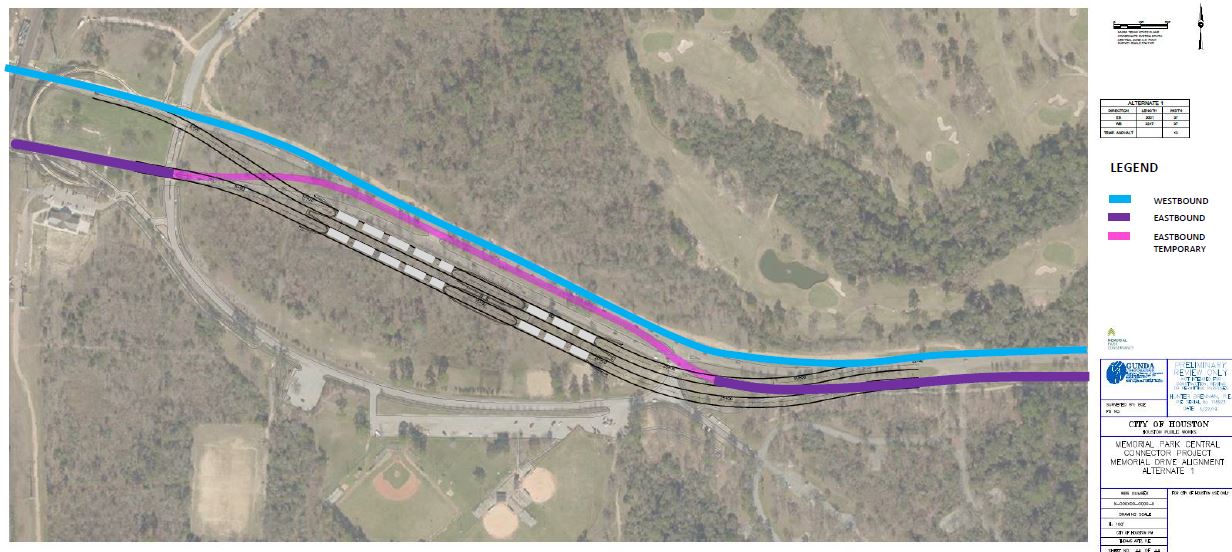 Memorial Drive will remain open during construction. Within the project area, traffic will be reduced from three lanes to two each way while a new section of Memorial Drive and the tunnel arch structures for the Land Bridge are completed directly south of the operating lanes. All lanes will reopen once construction is complete. A traffic study was commissioned to assess peak-hour commute times through the Park, and the construction plan is designed to minimize disruption.