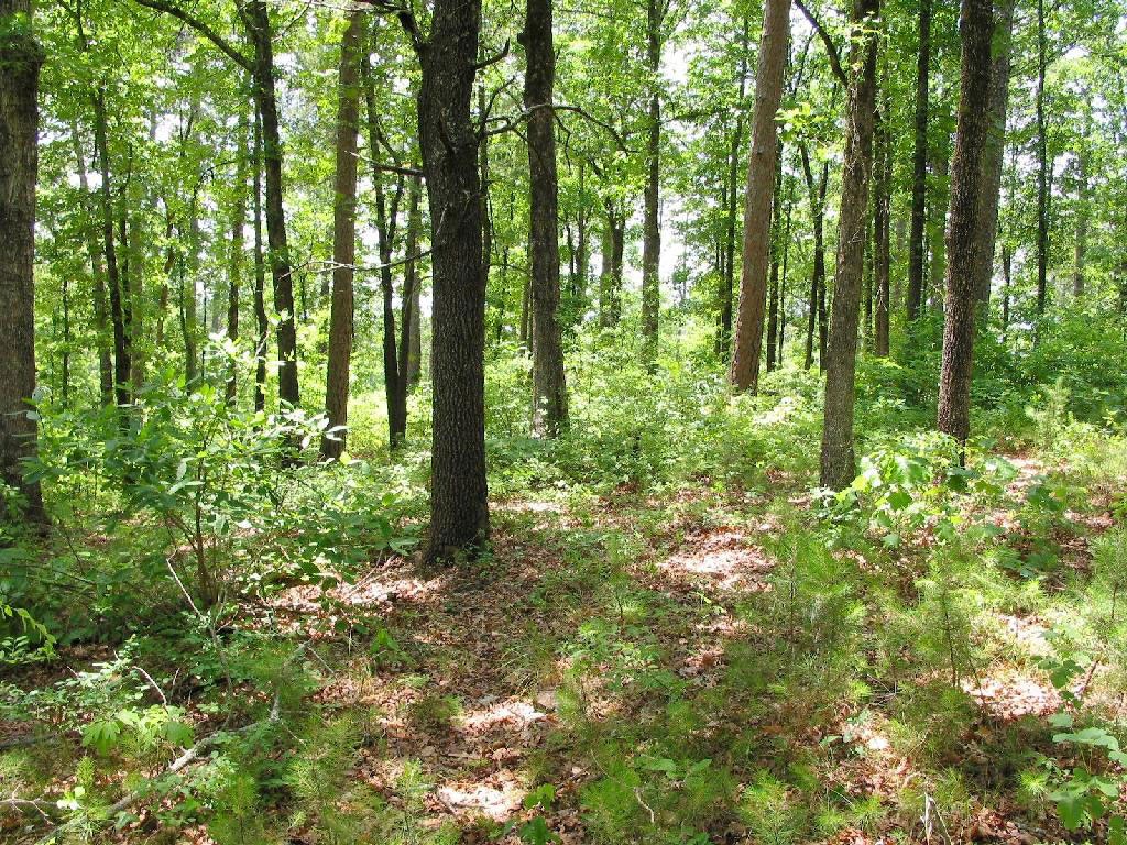 When the invasive thicket is removed, the pine-hardwood forests will have a very different character than they do now. Instead of appearing like an impenetrable mass, they will be filled with light and air between the trees with occasional groupings of shrubs and a low, native understory.